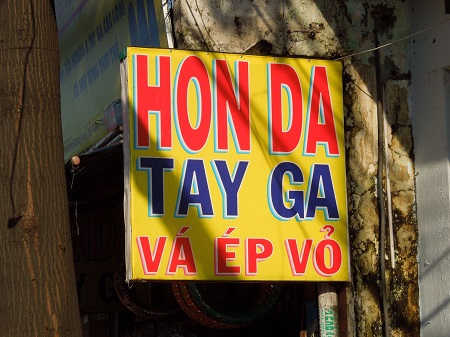 ベトナムに訪れると、しばしば日本語の看板を見ることができます。例えば「HONDA」。