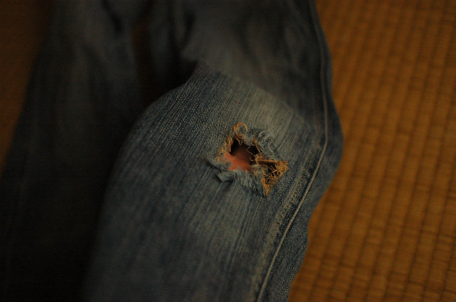 後日、彼女は購入されたデニムを持っていらっしゃいます。「砂利道で転んだら穴が開いたじゃない!なんて弱い素材なの!返品するわ!」スタッフは、全員口を開けて言葉を失いました。